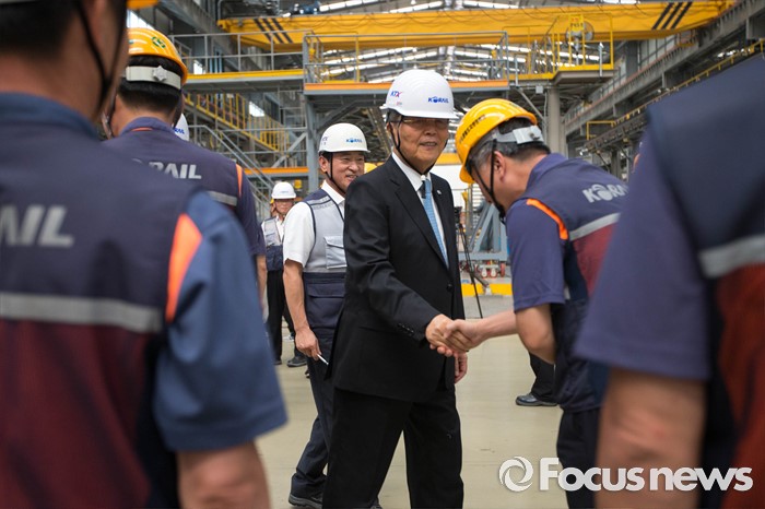(고양=포커스뉴스) 김종인 더불어민주당 비대위 대표가 26일 오전 경기도 고양시에 위치한 수도권철도차량정비단을 방문, 근로자들과 악수를 나누고 있다.