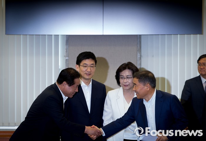 | △ 인사하는 정치발전특위 간사들 |