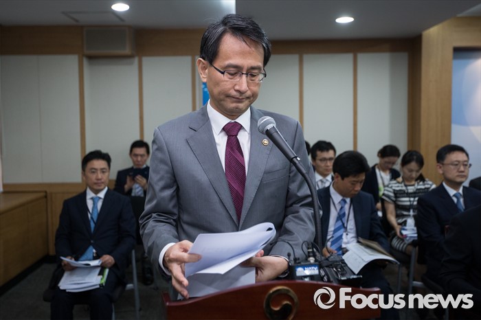 (서울=포커스뉴스) 이창재 법무부 차관이 26일 오전 경기도 정부과천청사 법무부 회의실에서 열린 '가습기 살균제 사고 진상규명과 피해구제 및 재발방지 대책 마련을 위한 국정조사특별위원회'(가습기 특조위) 법무부·공정위 진상규명을 위한 현장조사에서 가습기살균제 피해 보고를 하고 있다.