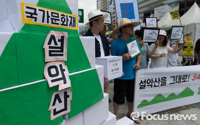 (서울=포커스뉴스) 설악산국립공원지키기 국민행동 회원들이 26일 오전 서울 광화문광장에서 열린 설악산 케이블카 반대 기자회견에 참석하고 있다.