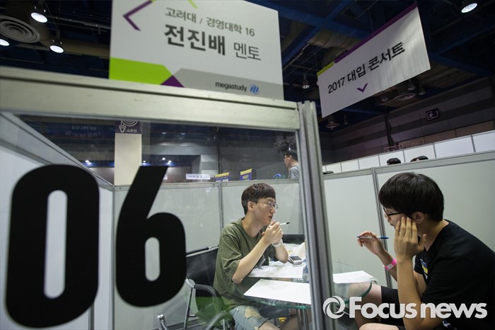 (서울=포커스뉴스) 26일 오후 서울 삼성동 코엑스에서 제1회 메가스터디 대입합격 박람회가 열리고 있다. 박람회장에서 한 학생이 '명문대 선배 즉문즉답' 부스에 앉아 상담 받고 있다.