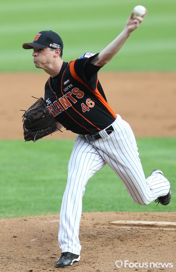 롯데 선발투수 레일리의 투구