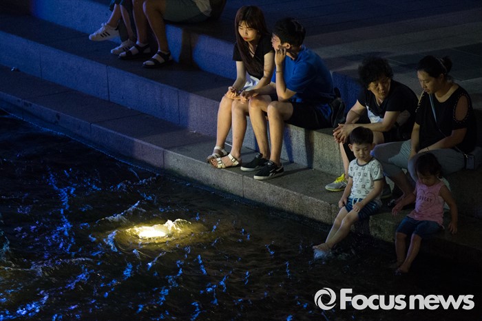 (서울=포커스뉴스) 서울과 전국 대분분 지역이 열대야인 26일 오후 서울 종로구 청계천을 찾은 시민들이 더위를 식히고 있다.