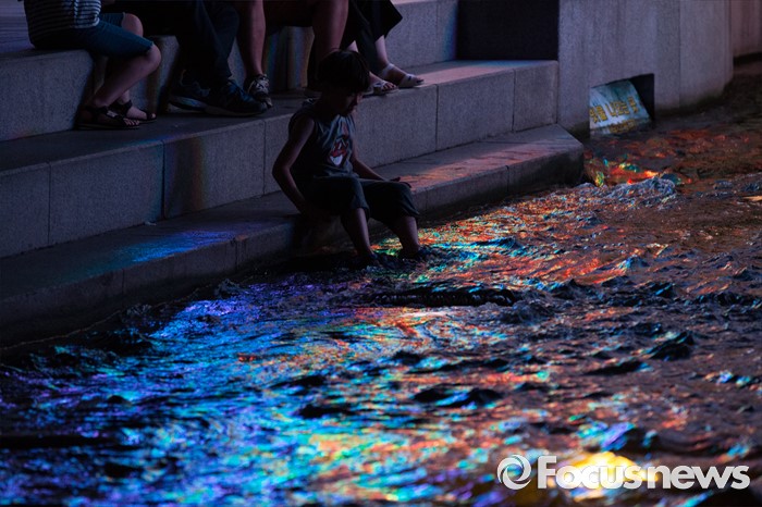 (서울=포커스뉴스) 서울과 전국 대분분 지역이 열대야인 26일 오후 서울 종로구 청계천을 찾은 시민들이 더위를 식히고 있다.