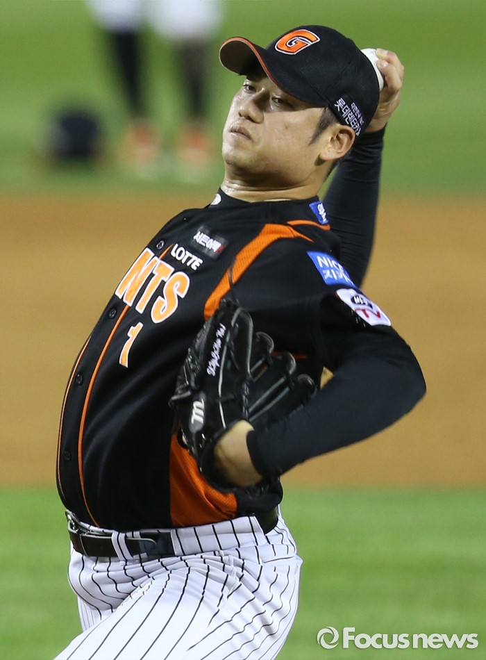 | △ 투구하는 롯데 마무리 투수 손승락 |