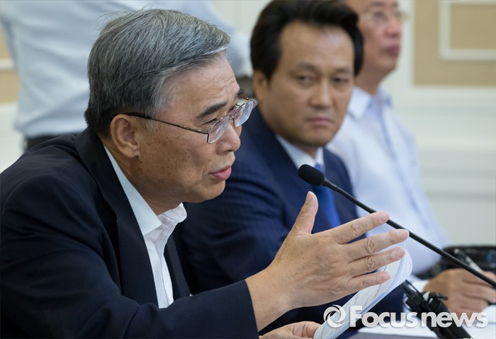 (서울=포커스뉴스) 27일 오전 서울 여의도 국회 귀빈식당에서 야3당 소속 의원들 주최로 열린 사드사태와 그 대응전략 간담회에 참석한 이종석 전 통일부 장관이 발언하고 있다.