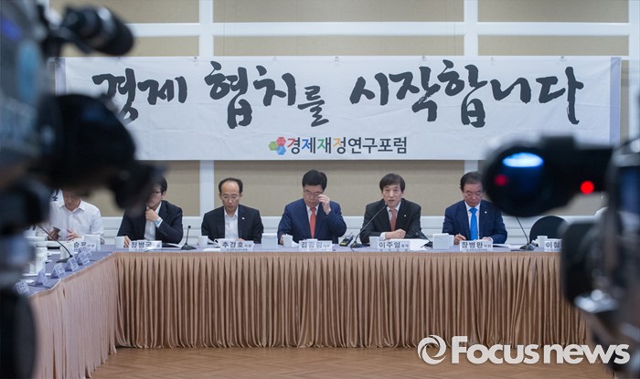 (서울=포커스뉴스) 27일 오전 서울 여의도 국회 귀빈식당에서 열린 경재재정연구포럼 조찬 간담회에 참석한 이주열 한국은행 총재가 발언하고 있다.