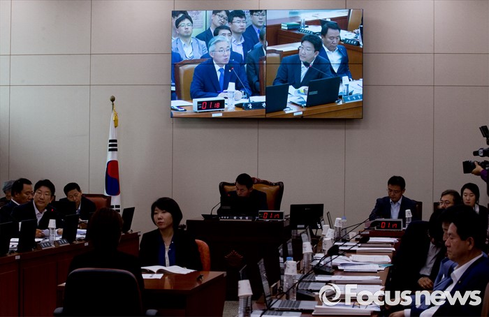(서울=포커스뉴스) 27일 오전 서울 여의도 국회에서 열린 평창동계올림픽 및 국제경기대회지원 특별위원회 전체회의에 참석한 김종덕 문화체육관광부 장관이 의원들의 질의에 답하고 있다.