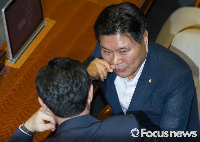 한편 홍 의원과 김문수 전 경기도지사가 이날 연이어 불출마를 선언하면서 당 대표 선거는 6파전으로 진행될 것으로 보인다.20일 오전 서울 여의도 국회에서 열린 344회 국회(임시회) 2차 본회의, 사드(THAAD·고고도미사일방어체계) 배치에 대한 긴급현안질문에 참석한 홍문종(오른쪽), 유기준 새누리당 의원이 대화하고 있다. 2016.07.20 박동욱 기자