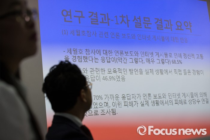(서울=포커스뉴스) 27일 오전 서울 중구 4·16세월호 참사 특별조사위원회에서 세월호 참사 피해자에 대한 언론보도 피해 및 명예훼손 실태 조사 결과 발표와 토론회를 하고 있다.