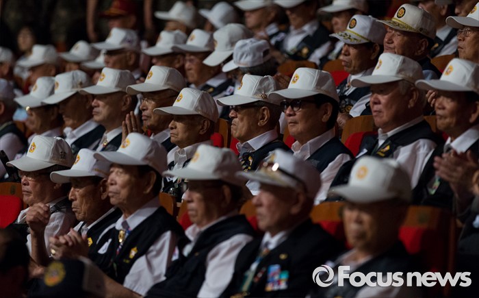(서울=포커스뉴스) 27일 오전 서울 송파구 올림픽공원 올림픽홀에서 정전협정 63주년 및 유엔군 참전의 날 기념식에 참석한 6·25 전쟁 참전용사들이 자리에 참석해있다.