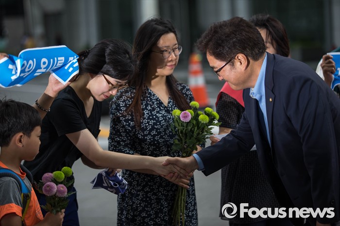 | △ 진실의 꽃 받는 우원식 위원장 |