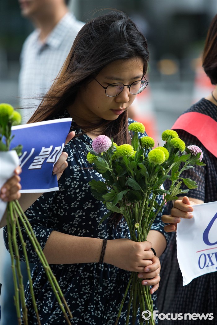 (서울=포커스뉴스) 27일 오전 서울 영등포구에 위치한 옥시레킷벤키저 본사 앞에서 가습기살균제참사전국네트워크 회원들이 '제2의 옥시를 막자-가습기살균제사고 기업 현장조사' 기자회견을 하고 있다.