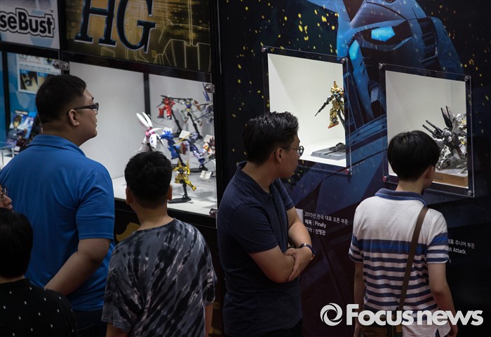 (서울=포커스뉴스) 27일 오전 서울 강남구 코엑스에서 열린 '건프라 엑스포 2016'을 찾은 방문객들이 전시작품을 바라보고 있다.