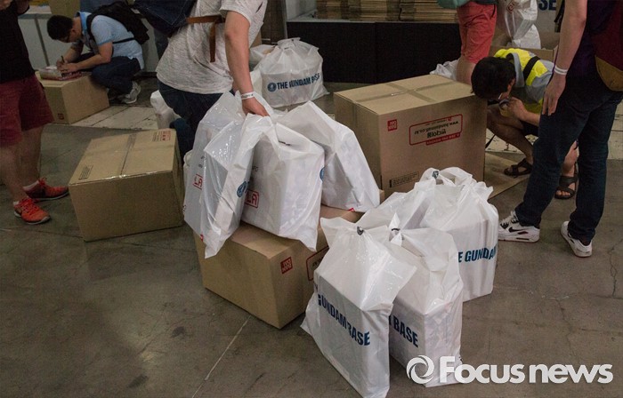 (서울=포커스뉴스) 27일 오전 서울 강남구 코엑스에서 열린 '건프라 엑스포 2016'을 찾은 관람객이 장내 매장에서 구매한 프라모델을 포장하고 있다.
