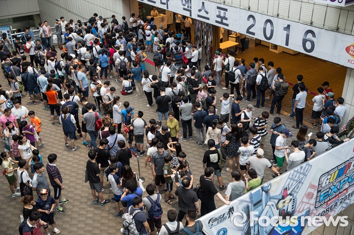 (서울=포커스뉴스) 27일 오전 서울 강남구 코엑스에서 열린 '건프라 엑스포 2016'를 찾은 관람객들이 입장을 기다리고 있다.