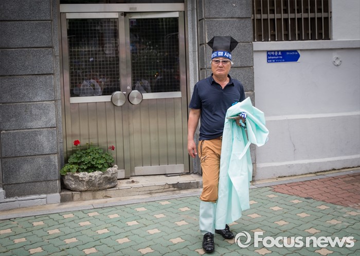 (서울=포커스뉴스) 27일 오전 서울 종로구 청운효자동 주민자치센터 앞에서 열린 '사드 배치 반대 기자회견'을 마친 성주 유림단체 회원들이 버스로 향하고 있다.