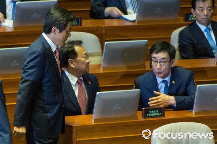 (서울=포커스뉴스) 황교안(왼쪽) 국무총리가 27일 오후 서울 여의도 국회에서 열린 344회 국회(임시회) 3차 본회의에 참석하기 위해 본회의장으로 들어서고 있다.