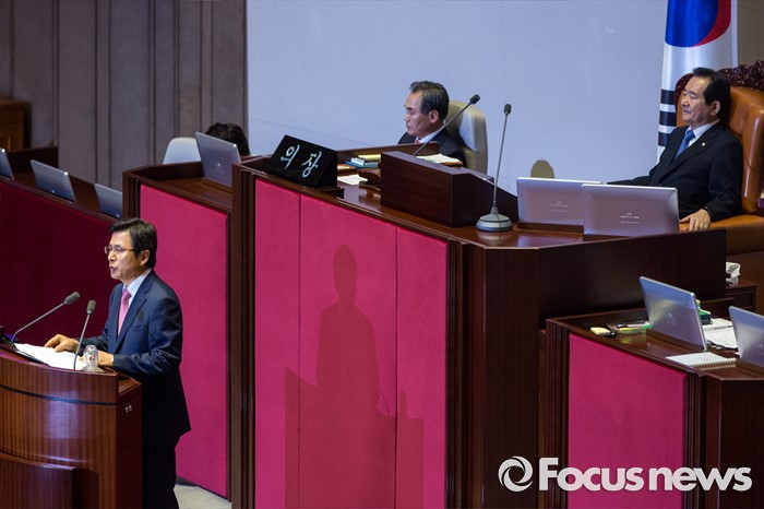 (서울=포커스뉴스) 황교안 국무총리가 27일 오후 서울 여의도 국회에서 열린 344회 국회(임시회) 3차 본회의에 참석해 추가경정예산안과 관련한 시정연설 하고 있다.