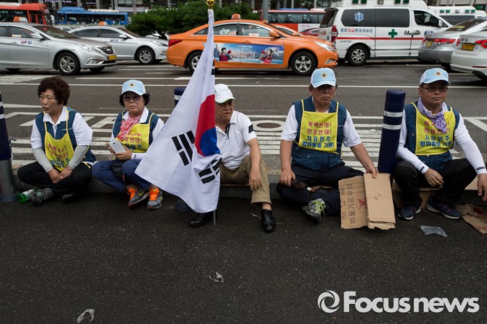 (서울=포커스뉴스) 27일 오후 서울 용산구 서울역광장에서 열린 사드배치 지지 범국민대회 및 자유민주평화통일 결의대회에 중앙보훈단체안보협의회·대한민국상이군경회 회원들이 사드 배치에 찬성하며 대회에 참석하고 있다.