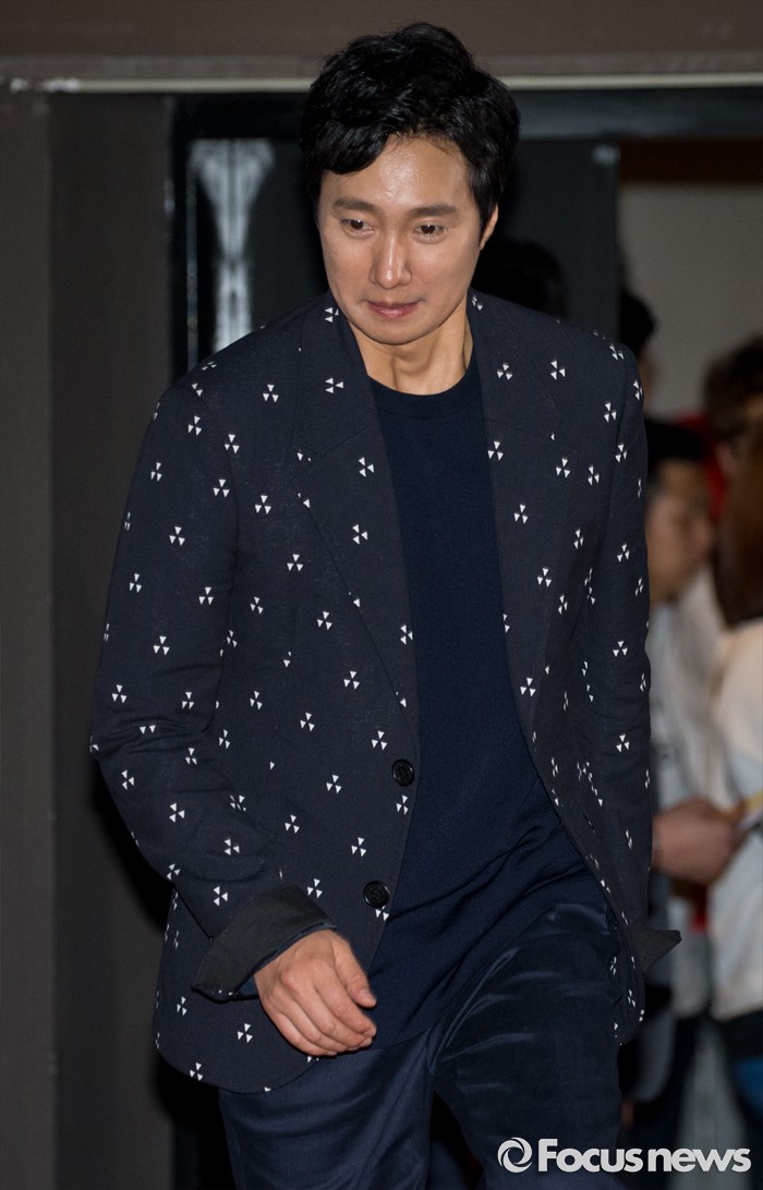 (서울=포커스뉴스) 27일 오후 서울 광진구 롯데시네마 건대입구점에서 열린 영화 '덕혜옹주' 언론 시사회에 참석한 배우 박해일이 무대에 오르고 있다.
