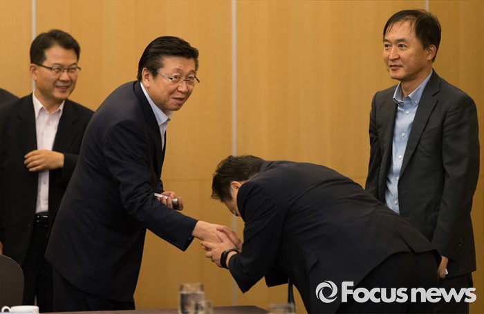(서울=포커스뉴스) 28일 오전 서울 서초구 쉐라톤 서울 팔래스 강남 호텔에서 열린 '책임있는 소비문화 조성을 위한 기업인과의 간담회'에 참석한 한견표(왼쪽 두번째) 한국소비자원 원장이 참석자들과 인사하고 있다.