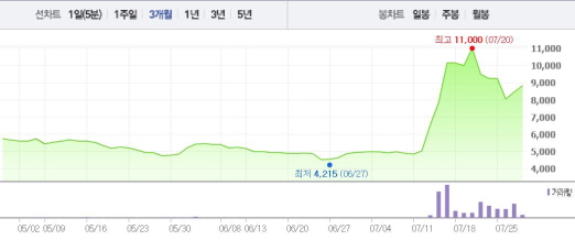 포켓몬 GO는 미국, 캐나다, 호주 등에 시범 출시된 상태며 현재 앱 매출 순위에서 최상위권에 올라갔다. 한국에서도 포켓몬 GO 열풍이 불고 있다.주가흐름<사진출처=네이버 캡쳐>