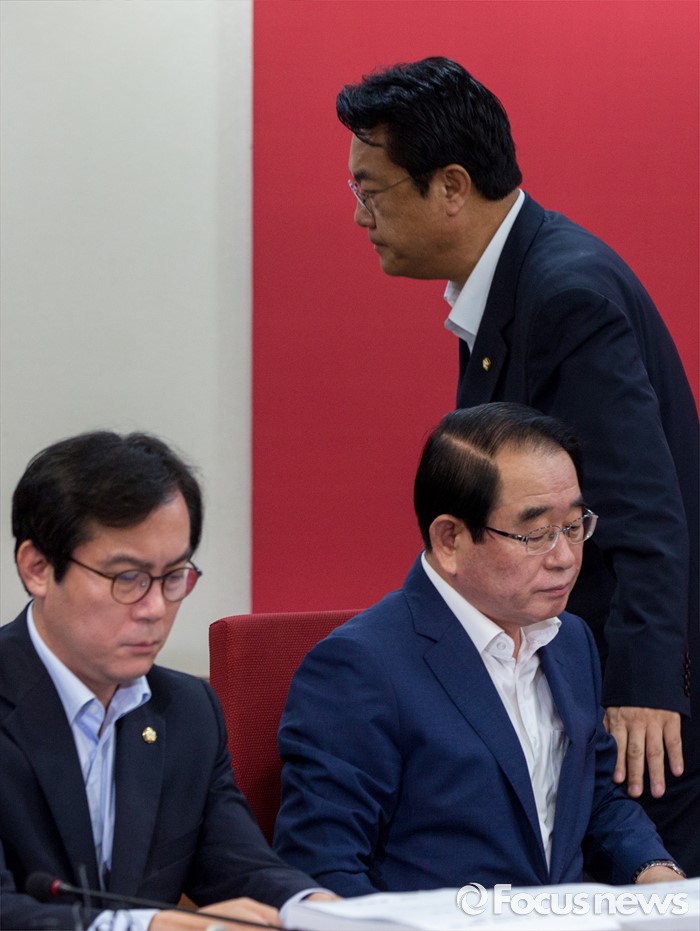 (서울=포커스뉴스) 정진석 새누리당 원내대표가 28일 오전 서울 여의도 새누리당사에서 열린 혁신비상대책위원회의에 참석해 취재진 공개 회의를 마친 뒤 회의실을 나서고 있다.