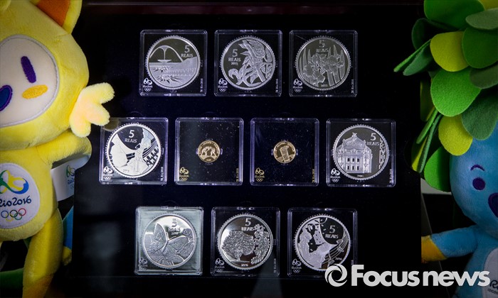 (서울=포커스뉴스) 28일 오전 서울 종로구 주한 브라질대사관에서'2016 리우 올림픽 기념주화'가 공개되고 있다.