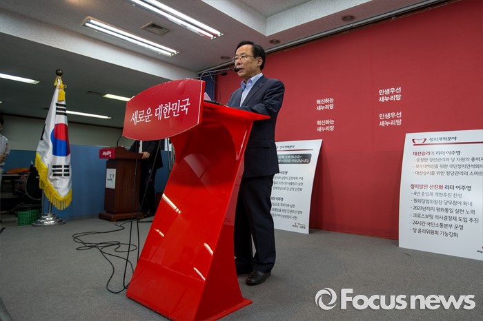 (서울=포커스뉴스) 새누리당 전당대회 당대표 선거에 출마한 이주영 새누리당 의원이 28일 오전 서울 여의도 새누리당사에서 정책공약 발표를 하고 있다.