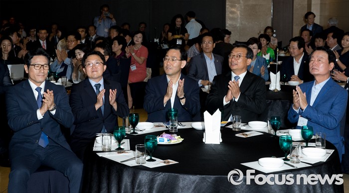 | △ 한 자리 모인 與 당권 주자들 |