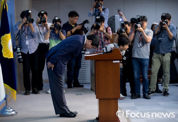 (서울=포커스뉴스) 이종걸 더불어민주당 의원이 28일 오전 서울 여의도 국회에서 전당대회 당대표 출마 기자회견에 앞서 인사하고 있다.