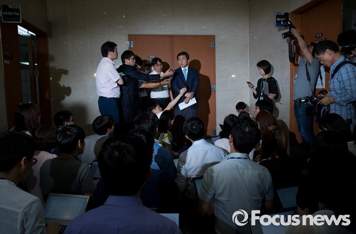| △ 취재진 질문 답하는 이종걸 |