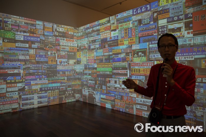(서울=포커스뉴스) 28일 오후 서울 용산구 국립한글박물관에서 열린 기획특별전 '광고 언어의 힘' 언론 간담회에서 참석자들이 다양한 광고를 살펴보고 있다. 개화기부터 현재까지 광고의 130여년 역사를 우리말과 우리글의 관점에서 풀어낸 이 기획특별전은 7월 28일부터 11월 27일까지 열린다.