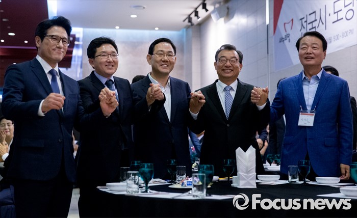 한편 또다른 비박계 주자인 주호영 의원은 "여론조사 비율 등 여러가지 견해를 달리하는 부분이 있어서 이번 단일화에는 참여하지 않았다"면서도 "전대가 진행돼 가는 상황을 봐서 차선의 선택을 위한 길을 열어두고 있다"고 했다.전당대회 대표최고위원 출마를 선언한 정병국(왼쪽부터), 김용태, 주호영, 이정현, 한선교 새누리당 의원이 25일 오후 서울 여의도 중소기업중앙회관에서 열린 중앙위원회 전국시도당연합회 월례회 행사에 참석해 취재진을 향해 포즈를 취하고 있다. 2016.07.25 박동욱 기자