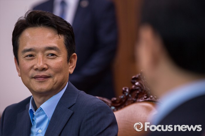 (서울=포커스뉴스) 남경필 경기도지사가 28일 오후 서울 여의도 국회 의장접견실에서 정세균 국회의장과 회동 하고 있다.