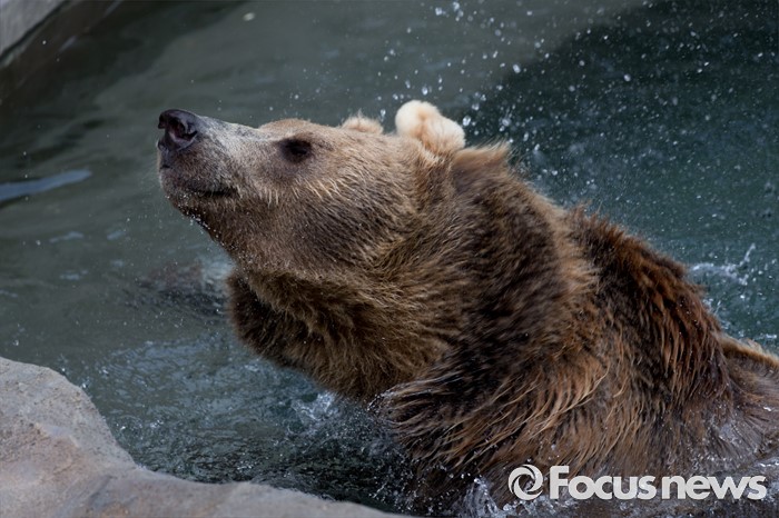 (과천=포커스뉴스) 28일 오후 경기도 과천 서울동물원에서 불곰이 물을 털고 있다.