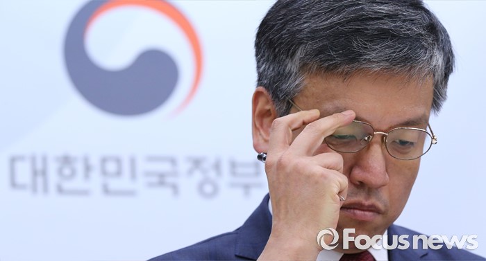 (세종=포커스뉴스) 최상목 기획재정부 제1차관이 지난 25일 오후 세종시정부세종청사 기재부 브리핑실에서 2016년 세법개정안 브리핑 중 안경을 만지고 있다.