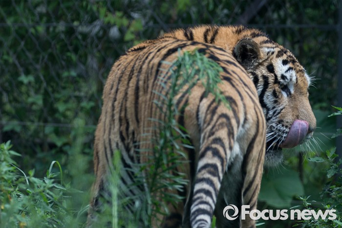 (과천=포커스뉴스) 28일 오후 경기도 과천 서울동물원에서 시베리아 호랑이가 얼린 닭고기를 먹고 있다.