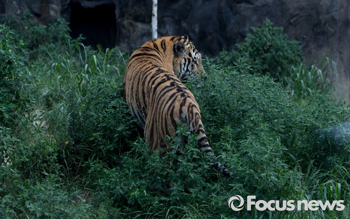 (과천=포커스뉴스) 28일 오후 경기도 과천 서울동물원에서 시베리아 호랑이가 얼린 닭고기를 먹고 있다.