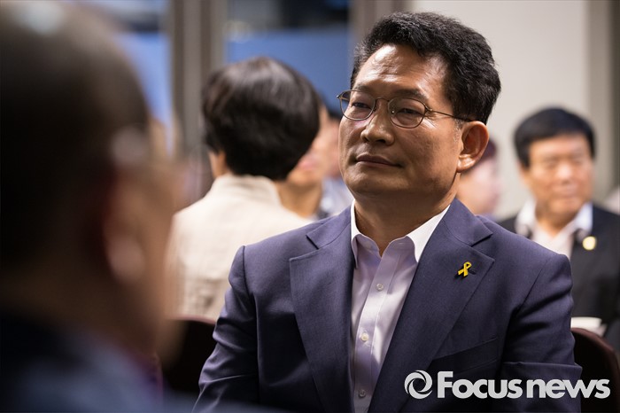 (서울=포커스뉴스) 송영길 더불어민주당 의원이 28일 오후 서울 성동구 레노스블랑쉬 웨딩홀에서 열린 서울 중구·성동갑 지역대의원대회에 참석하고 있다.