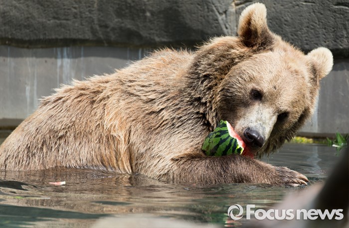 (과천=포커스뉴스) 28일 오후 경기도 과천 서울동물원에서 불곰이 얼음과일을 먹고 있다.