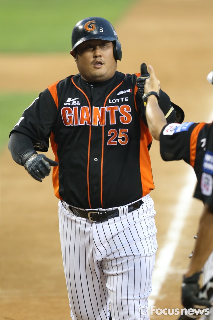 (서울=포커스뉴스) 28일 오후 서울 잠실구장에서 열린 2016 타이어뱅크 KBO리그 롯데-LG 경기에서 4회초 4번타자 롯데 최준석이 홈런을 친 뒤 홈으로 향하고 있다.