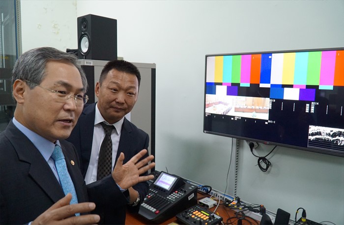 (서울=포커스뉴스) 몽골 국회 사무총장의 공식 초청으로 몽골을 방문 중인 우윤근 국회 사무총장이 28일 몽골 국회사무처에서 전자국회 프로젝트에 대한 설명을 듣고 있다. 이날 양국은 국회 및 사무처 간 교류 활성화를 위한 업무협약을 체결했다. <사진제공=국회사무처>