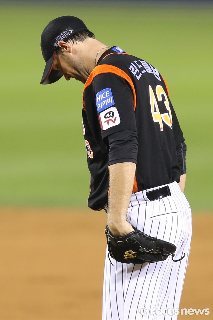(서울=포커스뉴스) 28일 오후 서울 잠실구장에서 열린 2016 타이어뱅크 KBO리그 롯데-LG 경기에서 5회말 롯데 림드블럼이 고개를 숙이고 있다.