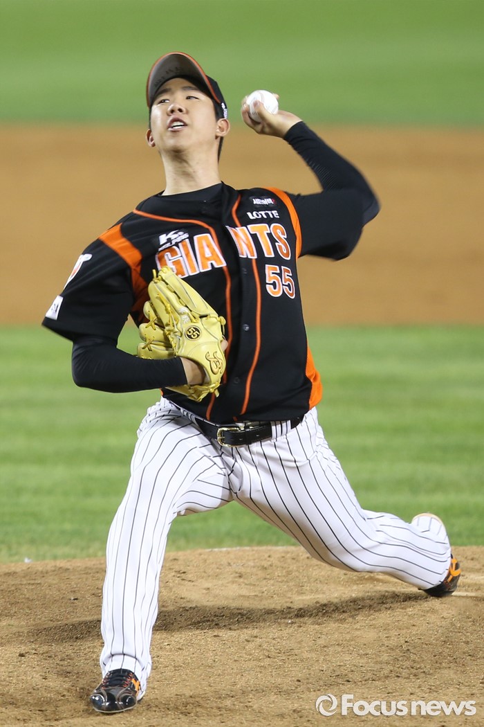 (서울=포커스뉴스) 28일 오후 서울 잠실구장에서 열린 2016 타이어뱅크 KBO리그 롯데-LG 경기에서 5회말 롯데 투수 김유영이 등판해 투구하고 있다.