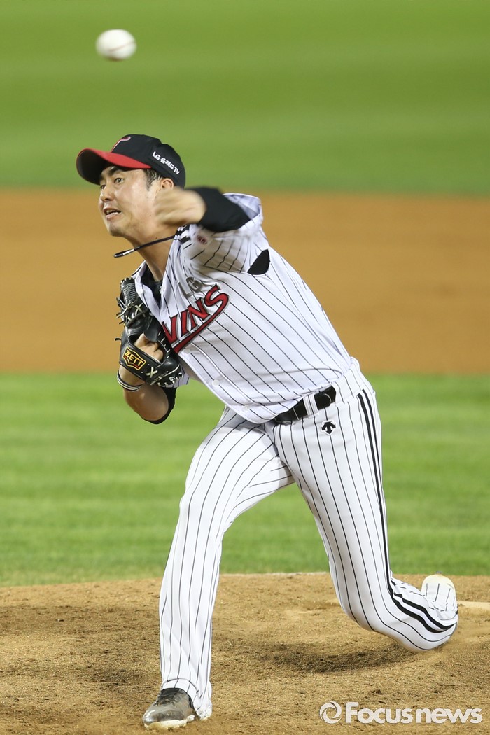 (서울=포커스뉴스) 28일 오후 서울 잠실구장에서 열린 2016 타이어뱅크 KBO리그 롯데-LG 경기에서 7회초 LG 진해수가 등판해 투구하고 있다.
