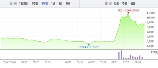 포켓몬 GO는 미국, 캐나다, 호주 등에 시범 출시된 상태며 현재 앱 매출 순위에서 최상위권에 올라갔다. 한국에서도 포켓몬 GO 열풍이 불고 있다.주가흐름<사진출처=네이버 캡쳐>