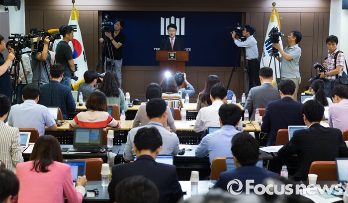 (서울=포커스뉴스) 이금로 특임검사가 29일 오전 서울 서초구 서울중앙지검 브리핑실에서 '100억대 주식 대박 의혹' 진경준 검사장에 대한 수사결과를 발표하고 있다.
