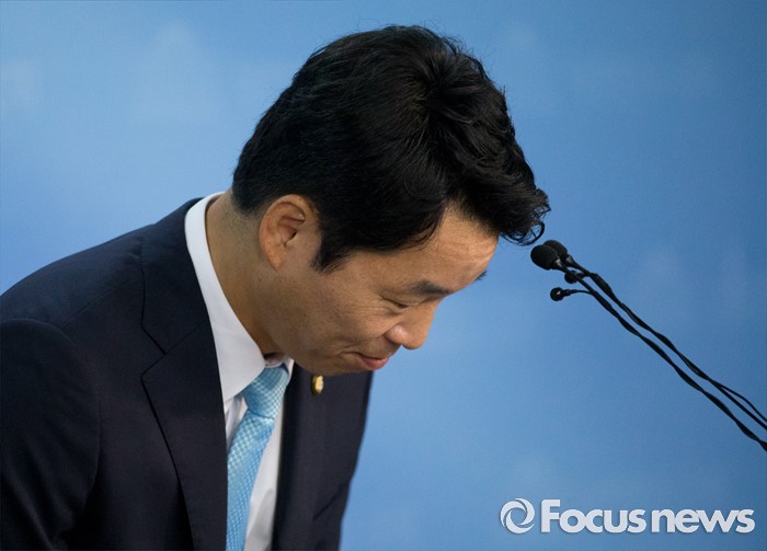 (서울=포커스뉴스) 김병관 더불어민주당 의원이 29일 오전 서울 여의도 국회 정론관에서 전국청년위원장 출마 기자회견을 마친 뒤 인사하고 있다.